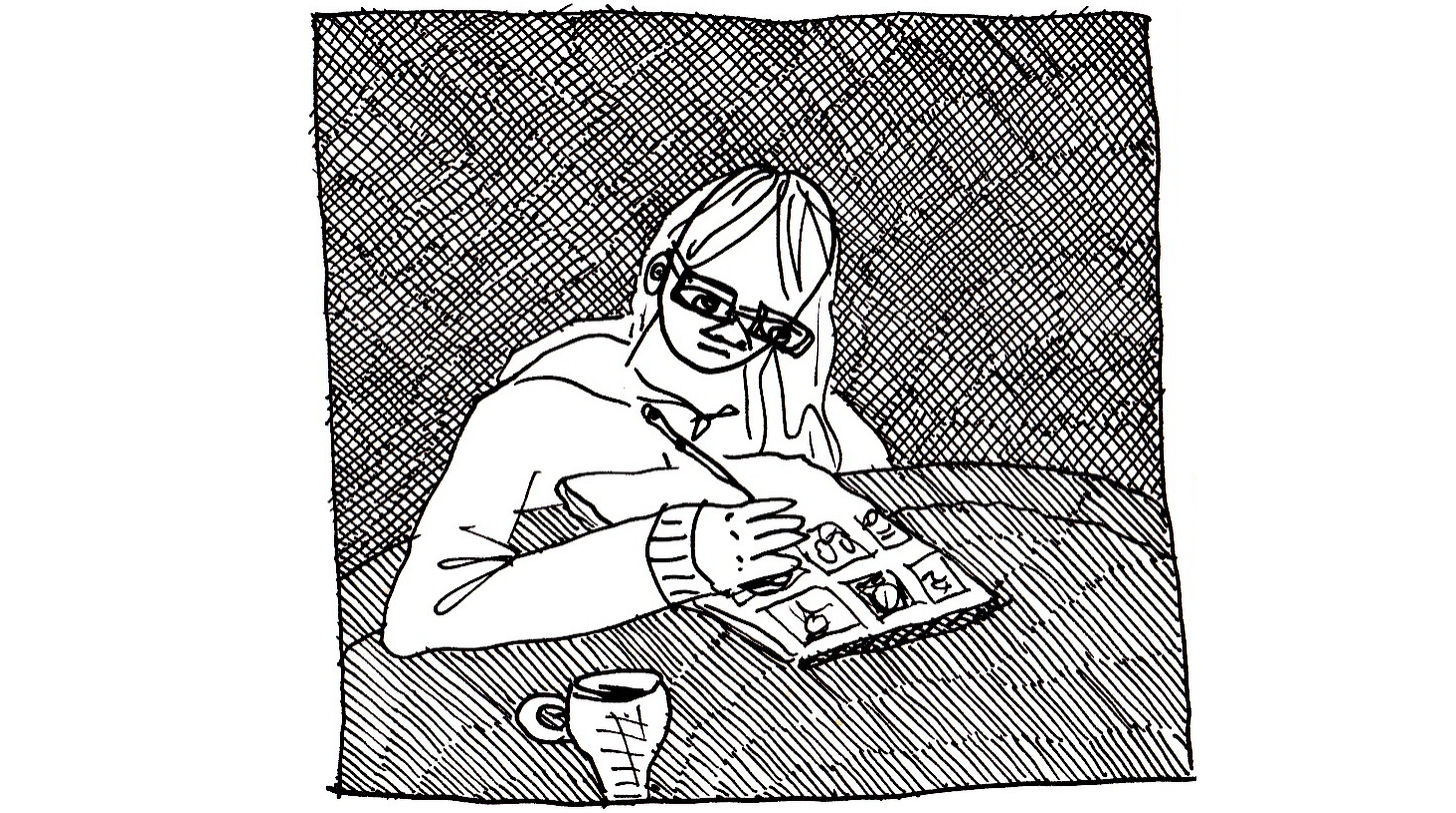 I’m Edith Zimmerman, and Drawing Links is a comics newsletter about my life. I started it in 2019, although it went on hiatus from 2022 - 2024. I also illustrate the newsletter The Small Bow. My comics and cartoons have appeared in The New Yorker, Vogue, and New York Magazine.